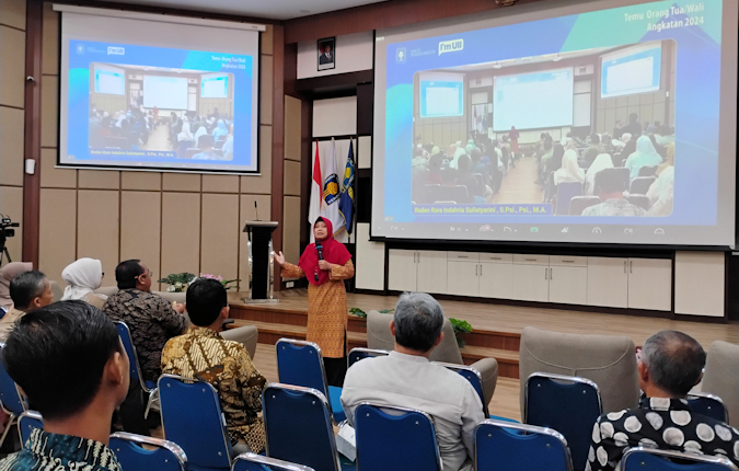 Perjalanan menempuh studi di perguruan tinggi seringkali berliku dan penuh tantangan. Tidak hanya dukungan finansial, tidak kalah penting mahasiswa juga membutuhkan dukungan moril dan psikologis yang kontinyu dari orang tua untuk dapat sukses menjadi pembelajar. Selain itu, kampus sebagai tempat menimba ilmu juga diharapkan dapat menjadi mitra strategis orang tua dalam mewujudkan cita-cita terbaik putra-putri mereka. Hal inilah yang menjadi pokok bahasan dalam acara Temu Orang Tua/Wali Mahasiswa Angkatan 2024 Fakultas Teknologi Industri (FTI) UII pada Sabtu (30/08) di Auditorium Gedung K.H. Mas Mansur, kampus terpadu. Acara yang berlangsung secara hibrid ini dihadiri orang tua dari 565 mahasiswa FTI UII angkatan 2024.